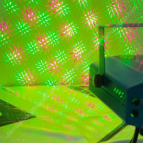 - Đèn Laser Mini Sân Khấu khi có tiếng nhạc hiệu ứng đèn sẽ chớp theo điệu nhạc rất thú vị.