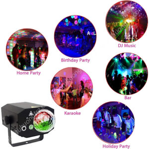 - Đèn sân khấu Laser Magic Ball được dùng vào mỗi mùa Lễ Tết tất cả mọi người, mọi nhà thường trang hoàng nhà mình bằng cách bố trí cây thông Tết , các công cụ trang trí , trang hoàng nhà cửa rất rộn ràng, và đèn trang trí là một trong những dụng cụ không thể thiếu của mọi nhà sản phẩm này giúp mọi người cùng tạo ra không khí vui tươi, tràn ngập sắc màu và lung linh huyền ảo vào mỗi buổi tối.